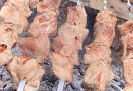 Якщо бачите, що м'ясо починає сильно рум'янитися, посуньте вугілля убік і збризкайте його водою.