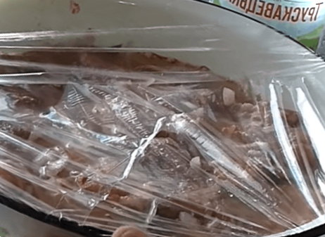 накриваємо миску харчовою плівкою та відправляємо в холодильник на 6 годин. Якщо часу недостатньо, його можна залишити при кімнатній температурі на 1-1,5 години.