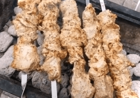 Ми намагаємося не одразу повернути шампури, навіть якщо спочатку шматки будуть вилучені золотою скоринкою, під якою м'ясо залишатиметься соковитим. І лише після цього ми передаємо його на інший бік.