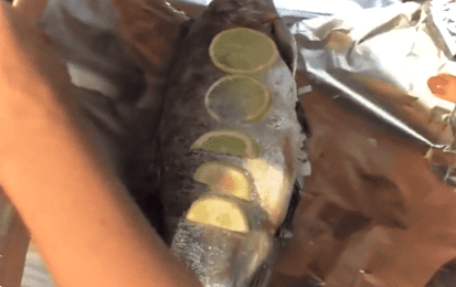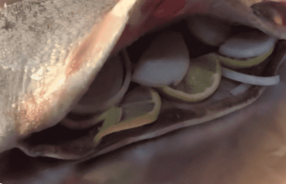 Білий перець більше підходить до риби, роблячи її смак яскравішим.Лимон і цибулю нарізаємо кружальцями. Кілька кружечків лимона кладемо на фольгу під рибку. Поверх укладаємо горбушу. Фаршируємо її часточками лимона, цибулі, туди ж кладемо пучки зелені, наприклад, кріп. Можна покласти більше, тому що при запіканні вони віддають сік і вона стане дуже м'якою, соковитою і дуже смачною. Зверху покриваємо скибочками лимона, що залишилися.