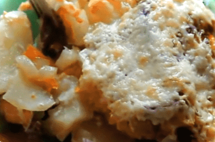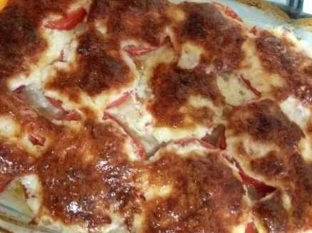 За бажанням за 5 хвилин до готовності зверху можна посипати натертим сиром на дрібній тертці.Ставимо деко в заздалегідь розігріту до 200ºС духовку, випікаємо 30-40 хвилин. Готове блюдо виглядає і пахне дуже апетитно.