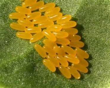 - У 1-му віці личинки вигризають нижню м'якоть листка;