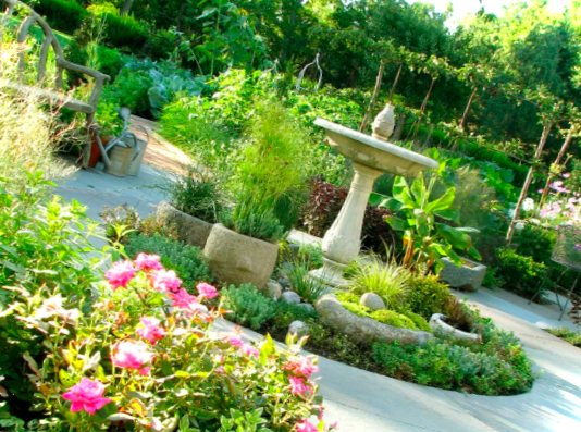 - Вазони та підвісні кашпо в саду. Для того щоб зробити атмосферу ділянки ніжнішою та милішою, ви можете розставити по території невеликі вазони з квітами, підвісити кашпо на будівлях та деревах. Самі вазони можна купити в готовому вигляді, відвідавши будь-який садовий центр, але, якщо є бажання досягти повної унікальності обстановки, тоді використовуйте свою кмітливість і створіть вазони самостійно. Підвішені кашпо в саду додають тієї самої легкості та легкості створеної атмосфери.
