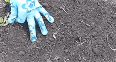 По борозенці висіємо насіння. Глибоко загортати їх не треба, тому що при глибокому закладенні шанс проростання насіння зменшується. Але й дрібно сіяти теж не треба, інакше вони можуть висохнути. Оптимальна глибина посіву – 2-3 см. Насіння одне від одного розкладають на ширину пальця.