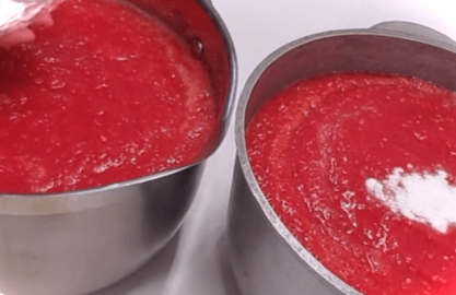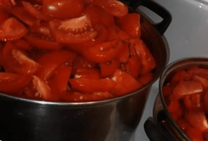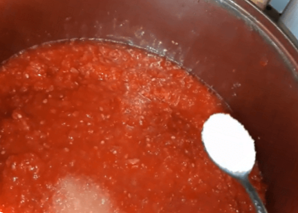 Якщо помідорів у вас багато, то краще перемелену масу розділити на 2 каструлі, з меншої кількості швидше випарується волога. Також радимо не закривати під час варіння каструлю кришкою.