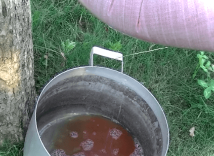 Крок 2. Візьміть мішок, який використовується в магазинах для упаковки цукру чи борошна. Краще його взяти невеликого розміру або відрізати від нього частину. Вибирайте такий мішок, щоб його тканина не була товстою. Вкладіть його в раковину і вилийте туди отриманий після соковижималки сік. Залишіть у такому положенні на кілька годин, щоб сік крізь маленькі отвори в мішку вільно стікав у раковину.