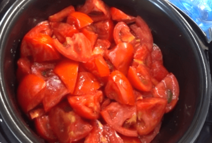 Ще один смачний та простий рецепт приготування томатів на зиму. Для його приготування потрібно стільки помідорів, скільки бажаєте. А для найкращого смаку автор рецепту рекомендує додавати червоний болгарський перець.