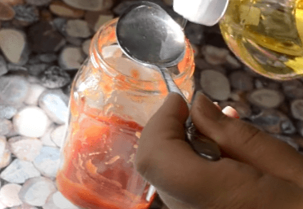 - Залийте будь-яким рослинним маслом. Достатньо 2-3 ст. л. олії, щоб вона повністю прикрила поверхню пасти. Мінус цього способу в тому, що при тривалому зберіганні на стінках може все-таки з'явитися цвіль.