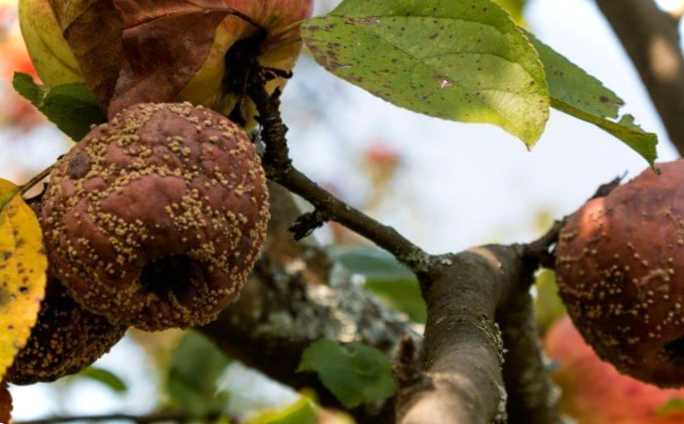Чорна гнилизна - це грибкове захворювання, яке поширюється вітром і дощем. Хвороба викликає безліч симптомів, включаючи запалі раковини, які можуть поступово збільшуватися до довжини в кілька футів. Хвороба часто викликає пурпурові плями та пошкодження на листі та плодах. Видаліть мертві або потріскані пагони та гілки, а також видаліть усі мертві яблуні, які можуть бути переносниками хвороби. Спалить усі обрізані гілки яблуні, що залишилися в саду.