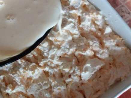 Ретельно розмішуємо та заливаємо зверху майбутню запіканку.