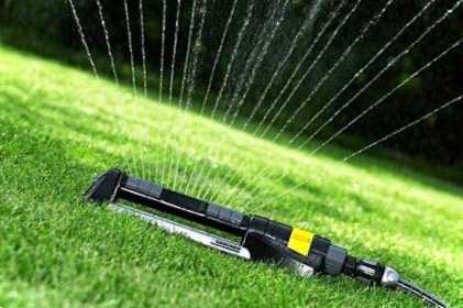 Поливають галявини за допомогою дощового шланга, кругового розбризкувача, дощувача, що обертається, автоматичних систем поливу.
