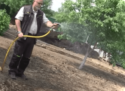 Після засіву насінням землю знову прикочують катком, а потім її потрібно полити. Розпилення води має бути дуже дрібним. Це сприяє рівномірному зволоженню ґрунту і не розмиванню насіння, що лежить на поверхні.