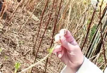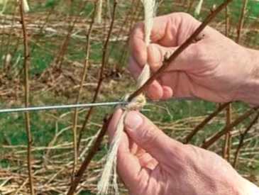 Якщо ви по осені пов'язували гілки та пригинали їх до землі, спочатку розв'яжіть гілки, щоб вони повернулися у вихідне вертикальне положення. А потім зробіть гнучким гілкам підпорки та підв'язку. Інакше від тяжкості ягід та листя вони схиляться до землі.
