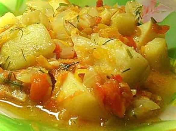 - Додати до перцю та шинки картопля з рибою, а також гірчицю та дрібно нашаткована зелена цибуля. Гасити все ще 3-4 хвилини.