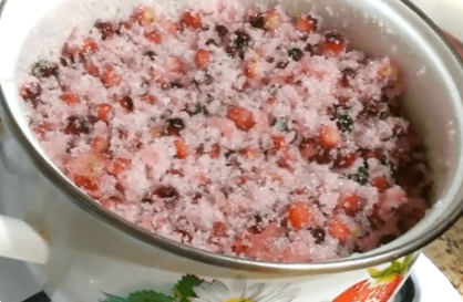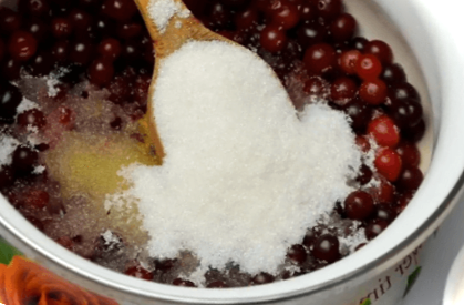 Журавлина не відноситься до ягод, які після переробки через недостатню кількість цукру або термічної обробки може закиснути і забродити. Але, погодьтеся, що, додавши до неї трохи цукру, ми лише покращимо її смак. Тому найпростіший спосіб її заготівлі на зиму – протерта з цукром.