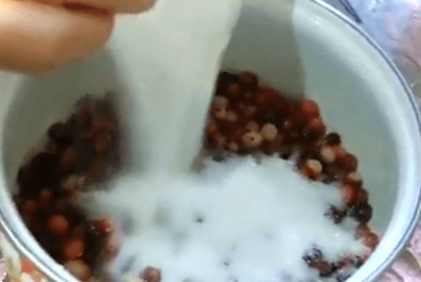 Тим часом в іншу каструлю засипаємо подрібнені горіхи. Вони мають бути величиною приблизно з ягоду журавлини. Ставимо каструлю з горіхами на середній вогонь. Як тільки вода закипить, вогонь зменшуємо до найменшого і варимо горіхи 30 хвилин.