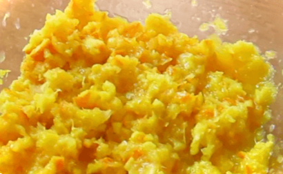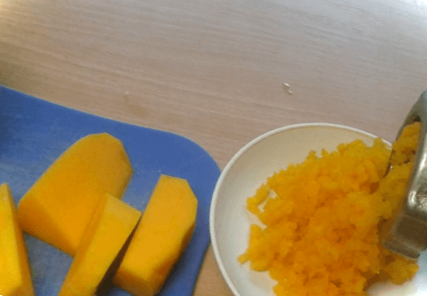 Очистіть гарбуз від шкірки та насіння, наріжте його невеликими шматочками і пропустіть через м'ясорубку.