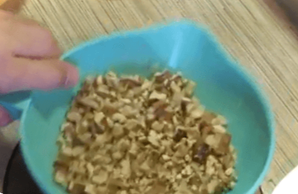Спочатку подрібнюємо волоські горіхи. Це можна зробити за допомогою блендера, увімкнувши його буквально на 3-5 секунд. Сильно подрібнювати горіхи не потрібно, інакше варення буде каламутним і не прозорим. Тому горіхи з блендера перекладіть у сито і відсійте дрібну фракцію. У ситі залишаться лише великі шматочки, саме те, що треба.