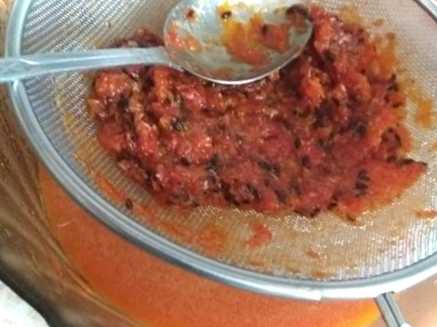 Переберіть ягоди, вимийте та обсушіть їх, і зробіть сік за допомогою соковижималки. Можна вчинити по-іншому, подрібнивши ягоди будь-яким способом, а потім відокремити кісточки та макуху через часте сито.