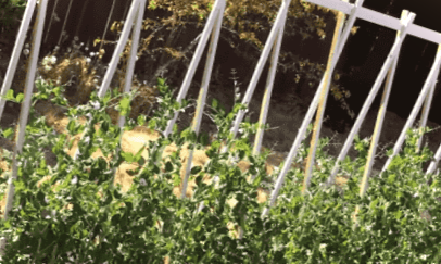 У міру зростання рослини стають вищими і під вагою можуть схилятися донизу і лежати на землі. Тому я вважаю за краще сіяти горох не на окремій грядці, а саджу насіння в одну лунку разом із картоплею. Картопляне та горохова бадилля ростуть вгору одночасно, горохове стебло чіпляється за картопляне, завдяки чому воно не падає на землю. А якщо ви волієте вирощувати його на окремій грядці, зробіть такі опори, як на цьому фото.