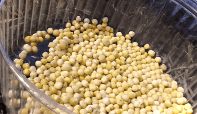 - Через 5 хвилин насіння промийте теплою водою, а потім його замочіть водою кімнатної температури на добу. За цей час насіння набухне, ввібравши в себе всю рідину. До моменту пророщування обприскуйте насіння до моменту проростання, щоб вони не засохли. Приблизно через 4-5 днів з'являться паростки, і горох можна садити в ґрунт.