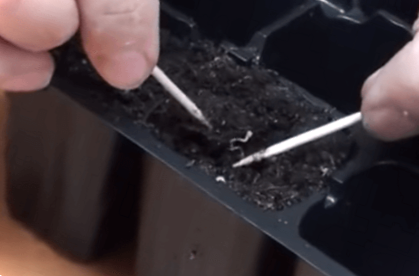 Потім необхідно зробити невеликі ущільнення на поверхні ґрунту. Якщо це контейнер, можна намітити борозенки звичайною ручкою або невеликою лінійкою. Глибина борозенок чи заглиблень має перевищувати 2-3 мм. Якщо ви висіваєте насіння в товсті таблетки, там вже є невеликі заглиблення, тому додатково поглиблювати ґрунт не потрібно.