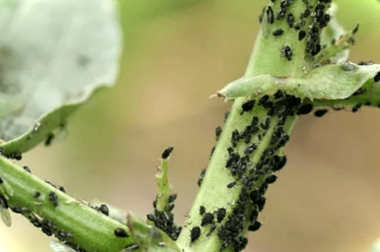 Попелиця - дрібні жучки зеленого чи чорного кольору, які висмоктують соки з молодих листочків. Рослина поступово чахне, в'яне і гине. Впоратися з попелицею допоможуть обприскування настоями цибулиння, тютюну, часнику, бадилля помідорів, кульбаби. Детальніше - як боротися з попелицею.