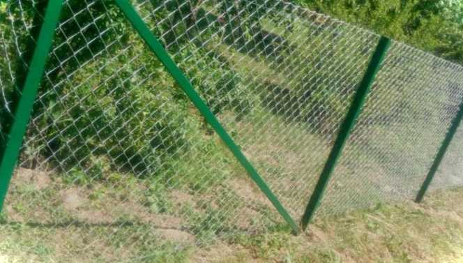 - Без напрямних. Це одні з найдешевших варіантів створення сітки. Вміння і знання не потрібно, виконати такий паркан може будь-яка людина навіть не маючи спеціального досвіду. Суть полягає в тому, що спочатку потрібно закопати стовпчики, а по них натягнути рабицю. Стовпчики зазвичай встановлюються з відривом приблизно 80-90 сантиметрів друг від друга.