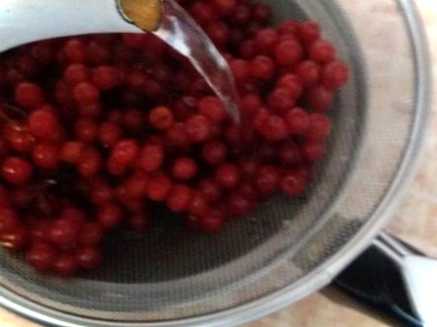 Безпосередньо перед переробкою пензлика перекладають у друшляк, який розміщують на глибокій страві або каструлі. Промивають калину під струменем води з чайника або під проточною водою з крана. Це робити потрібно обов'язково.