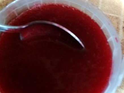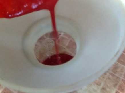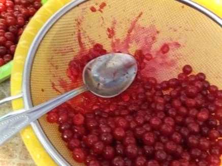 Спочатку з промитих і сухих ягід роблять сік, що можна зробити за допомогою соковижималки. Або подрібнити їх у блендері, а потім протерти через сито. Якщо ні блендера, ні соковижималки не виявилося, то можна протерти через сито, розташоване над каструлею або глибокою мискою.