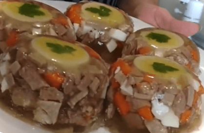 Рецепт приготування порційної заливної з яловичої мови