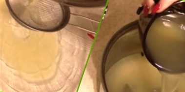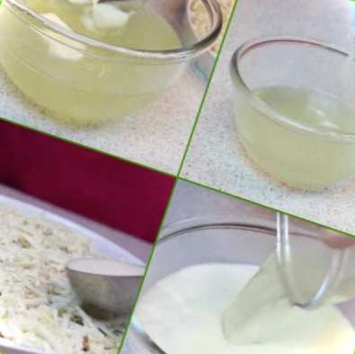 У миску насипаємо порошок желатину. Беремо ситечко, викладене двома шарами паперової серветки або марлею, і проціджуємо бульйон із каструлі в чашку з желатином. Рідина добре розмішуємо і залишаємо на деякий час, щоб він набух і розчинився. Коли бульйон стане прозорим, він готовий до застосування.