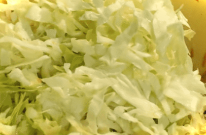 Коли овочева маса закипить, вогонь потрібно зменшити, і продовжуємо гасити овочі під кришкою ще 40-45 хвилин. Поки овочі тушкуються, в цей час стерилізуємо банки, кип'ятимо кришки, шаткуємо капусту тонкою соломкою.