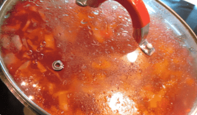 Щоб капуста швидше зварилася, перед тим як покласти її в бульйон, пам'ятайте її на обробній дошці, вона стане м'якшою, відповідно швидше і звариться.Як тільки бульйон знову закипить, відправляємо туди баночку заправки, розмішуємо. Закриваємо кришкою та залишаємо варитися до готовності. Якщо у вас заморожена заправка, її слід дістати з пакета або відламати шматок і покласти відразу в бульйон.