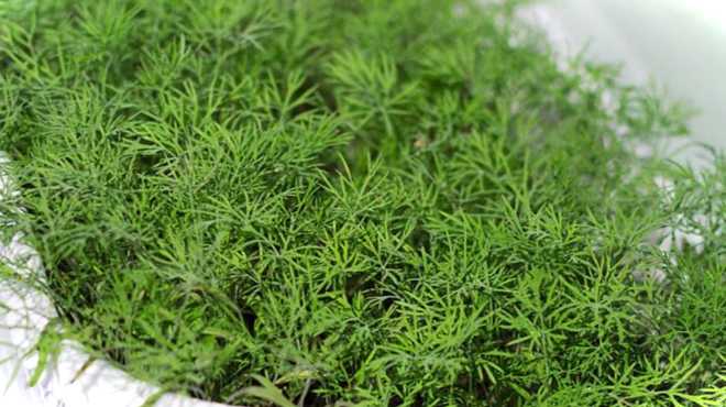 - Кріп - ароматна, смачна, завжди актуальна зелень на вашому столі. У садовому центрі продаються спеціальні сорти кропу для підвіконня, вони не виганяють великі стебла, а дають пишну та густу зелень протягом тривалого часу. Вирощується зелень за допомогою насіння, краще віддавати перевагу спеціальним сортам, які можуть давати хорошу врожайність на підвіконні. Грунт підійде універсальний, необхідно його змочити і, за принципом петрушки, накрити поліетиленовою плівкою для створення ефекту парника. Через 3-4 дні на поверхні з'являться перші паростки, плівку прибрати та підтримувати вологість ґрунту.